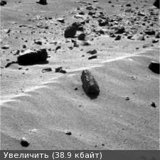 Поверхность серая, дюны черные, камни белые, - камни находятся как на поверхности, так и поверх склонов дюн. То есть, на склонах дюн лежат камни, что в пользу перемещению дюнами даже очень больших камней и противоречит перемещению дюн посредством сальтации, то есть переносом каждой песчинки по отдельности. Поскольку, при перемещении, песчинок по отдельности, камни оказались бы на поверхности.