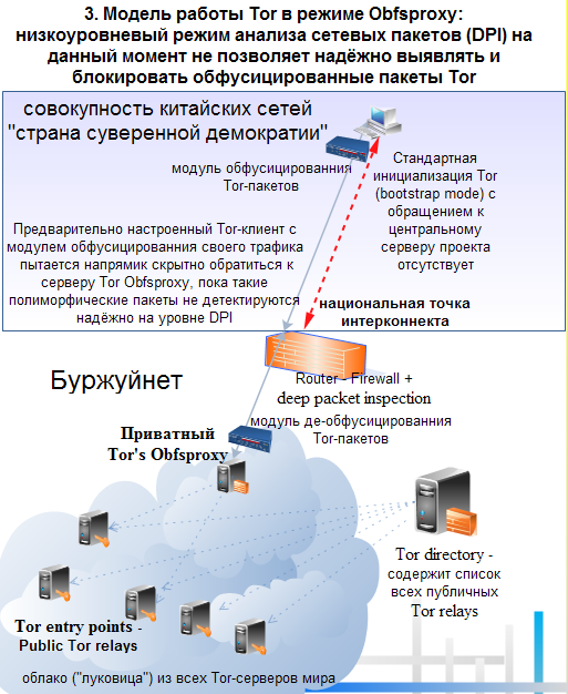 Во-первых, по идее государству нет особого смысла полностью болкировать упомянутые взможности. Достаточно сделать их использование возможным "только для гиков". Например, найти и заюзать Tor-браузер может любой не-гик. При блокировании публичных нод нужно сделать действия, труднодоступные "Тёте Вале", а включение какого-нибудь "хитрого режима" уже недоступно практически всем "хомячкам". Чуть-чуть надавить - и для работы с Tor потребуются знания, "запредельные" для хоум-юзера. Самый популярный вопрос на "Ответах Мейл Ру" - где скачать такой-то фильм без торрента. Хомячкам недоступен даже торрент [ГДЛБ! это про ваш уровень развития!] - они его использовать не умеют, не говоря уже о каких-то настройках.