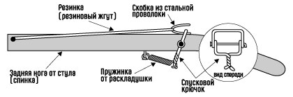 Энергия же всей конструкции заключалась в жгуте (идеально подходил кусок велосипедной камеры), который цеплялся за шомпол с одной стороны крепился к основе с другой.