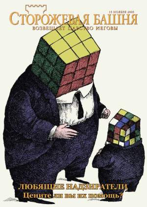 Два Свидетеля предлагают брошюру "Что от нас требует Бог?" строгому мужчине. Тот, взглянув на обложку, сказал: "У вас тут одни американцы изображены. Ни одного русского". "Нет, здесь есть и русские. Вот (показывают стр. 20-21)".