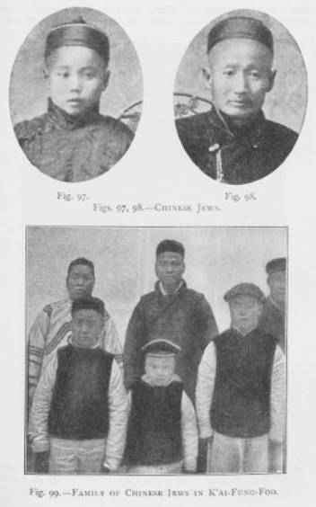 Наиболее интересны китайские евреи, потому что как можно заметить на фото 97-99 они совершенно не похожи на евреев, но легко могут сойти за китайцев. Еще много лет назад было известно о китайских евреях из сообщений иезуитских миссионеров, которые посещали их в течение семнадцатого столетия. Недавно евреи из Шанхая предприняли более или менее успешную попытку изучить, а так же «спасти» остаток Израиля, который проживает в K'ai-Fung-Foo [Знаменитая кайфыньская община евреев. В интернете опубликовано множество исследований и фактов о потомках еврейских кайфыньцев, занимающих самые высокие посты в коммунистическом Китае].