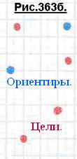 . Методом комбинирования всех возможных вариантов сочетаний целей и ориентиров над друг другом получим некую систему. Дело в том, что постепенное увеличение количества целей рис.364а приведёт не к постепенному переходу его в рис.363а, а к изменению общего масштаба картинки. Ведь если концентрация положительных стимулов вокруг животного попросту возрастала, то запоминание соответствующих ориентиров практически сразу же перестало бы быть ему необходимым. В результате получаем вариант длительного следования к цели по малому числу общих данных (рис.363а и рис.363б - в одинаковых масштабах).