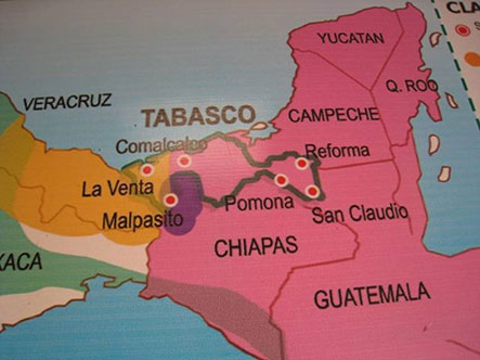 На около городка Паленке водопадах Аква Азул, видео: http://www.youtube.com/watch?v=g4zfVoePGbM&feature=related и http://www.youtube.com/watch?v=1cDkkDVkIDI&feature=related и http://www.youtube.com/watch?v=7SD5cqUdEOQ&feature=related а это однокаскадный водопад Мизоль. Видео: http://www.youtube.com/watch?v=SgaIDsneLes&feature=related и http://www.youtube.com/watch?v=SELWPSio9AQ&feature=related находятся деревни местных аборигенов, которые выжиывают подаянием у туристов. Естественно до поры до времени выживают. Когда их надо будет ликвидировать, их ликвидируют в момент и никакое подаяние не спасёт. На другой день Холмс выехал к другому областному центру - штата Табаско - городу Вилла Хермоза (Прекрасная Вилла) http://en.wikipedia.org/wiki/Villahermosa город - огромная человеческая помойка навроде Мехико или Гонгонга. Но Холмса интересовали в Вилле Хермозе музей культуры ольмеков под открытым небом в городском парке: http://es.wikipedia.org/wiki/Parque-Museo_La_Venta а также в 70 километрах от Виллы Хермозы археологическое место Комалькалько http://en.wikipedia.org/wiki/Comalcalco