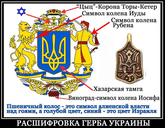 "Елена Мазур, председатель Всеукраинского объединения «За Украину, Беларусь и Россию» (ЗУБР) рассказывает о том, что в оккупированной международным Кагалом Украине на пост Президента претендуют исключительно евреи — ставленники иудейской нацистской секты Хабад: Тимошенко-Капительман, Порошенко-Вальцман, Рабинович, Добкин и прочне тигипки… Images7/ZhidohazaryHK.jpg