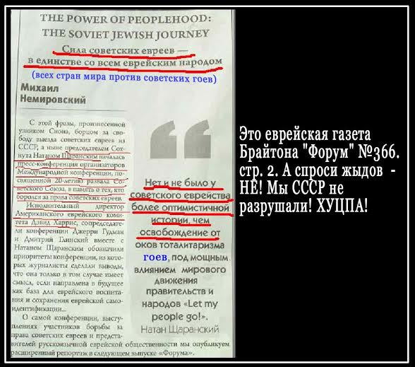 Свершилась их давняя мечта, они уничтожили социализм и идею равенства и единой общности советского народа, потому что идея равенства с гоями была просто ненавистна Чузанному Пиплу! Щас общество в России, как и на Западе, строго кастировано на верхние левелы окупируемые только еврейской кровью, и нижайший левел - на котором влачат своё существование гои. Это как во всех цИВИЛизованых странах, в чём собственно, Уотсон, и весь внутренний смысл всей цИВИЛизации, что евери - раса господ, а гои - раса созданная для их обслуживания. Главраббай Израиля Обадия - зря пиздеть не будет: Fotoalbom12/images/RabbiObadia_jpg.jpg